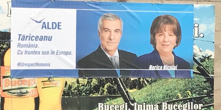 Nu oriunde găsești un loc atât de potrivit pentru acest afiș electoral: pe emblema ALDE e un vultur, Tăriceanu e-n tăria cerului și Norica în nori.