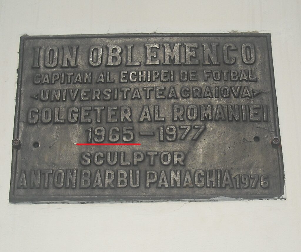 Pe soclul lui Ion Oblemenco de lângă stadionul cu același nume e inscripționată, fără vreo precizare, o perioadă: 1965-1977. Durata vieții lui Oblemenco nu poate fi asta, atunci ce-i?