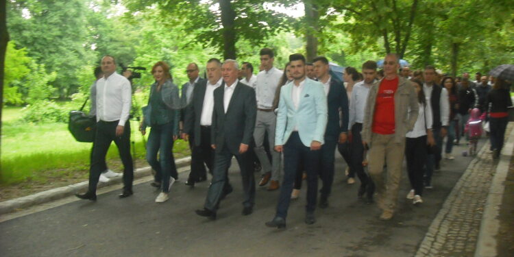 Pesediștii de vază au venit în păr – președintele CJ, parlamentari, primarul interimar și candidatul din partea PSD la Primărie, Mihail Genoiu, proaspăt demisionat din funcția de primar interimar. Primăria n-a invitat și candidați ai altor partide. Sau i-o fi invitat și n-au venit ei.