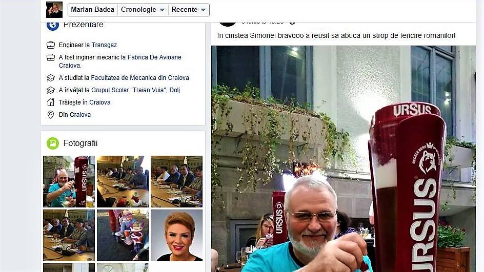 Marian Badea, singurul consilier județean PNL care dă un share, pe 7 iunie, postării lui Mario Ovidiu Oprea, despre mitingul PSD. Pe 9 iunie, dl. Badea este vesel și bea o bere în cinstea victoriei Simonei Halep. Atât.