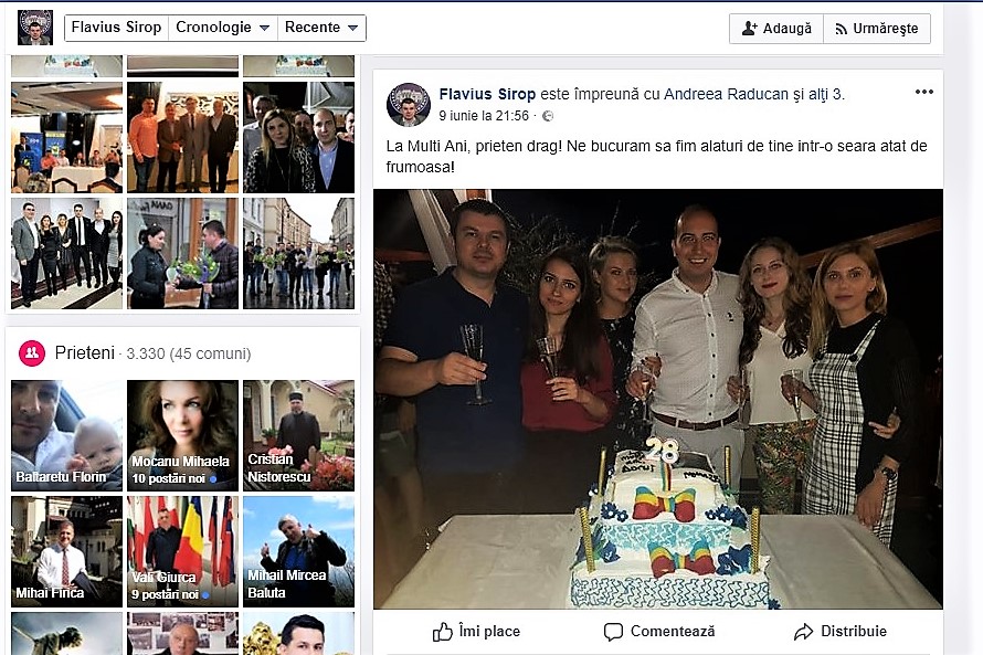 Consilierul Flavius Sirop era ocupat, pe 9 iunie, mai mult cu șampania la ziua colegului Câplea, decât cu postări anti-mitingul PSD. Trăiască paru’, pardon, șampania!