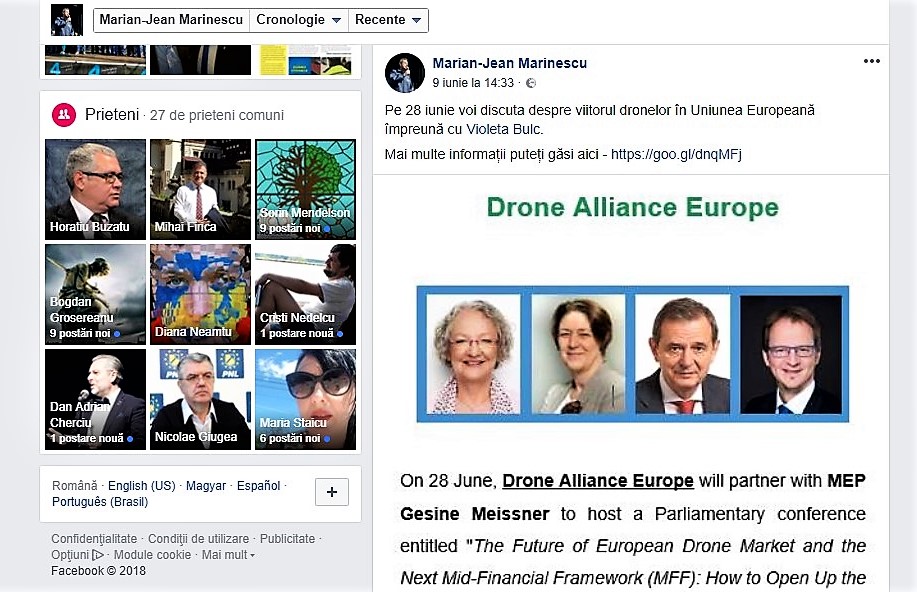 Europarlamentarul Marian-Jean Marinescu, pe 9 iunie, se „dădea cu drona”, fără par, fără vreo pomenire despre mitingul PSD, îmbătat probabil de aerul tare al Parlamentului European.