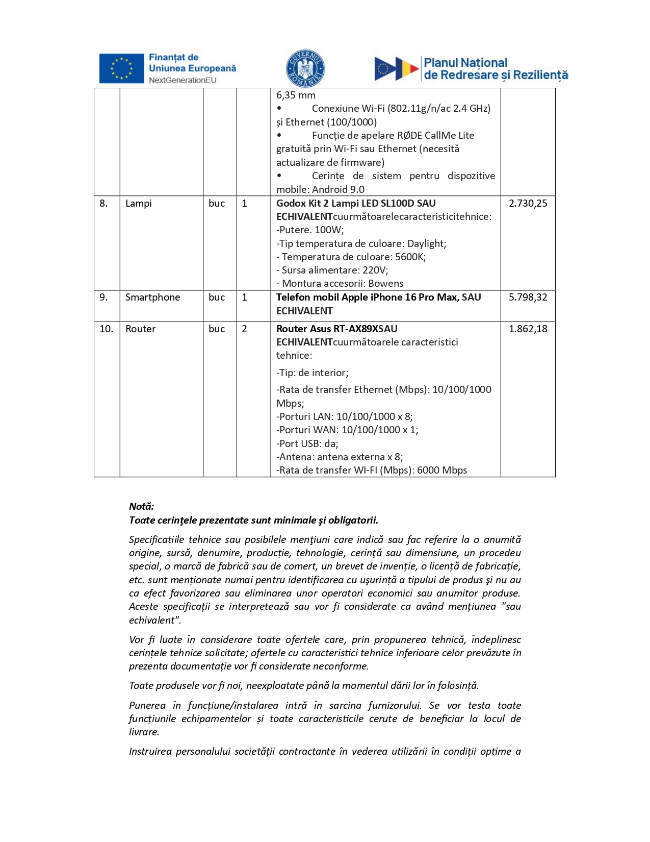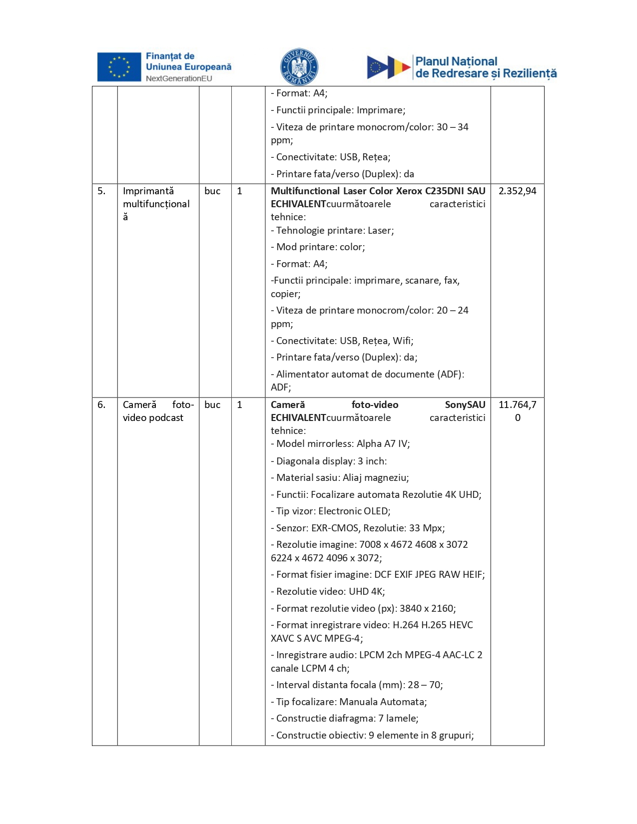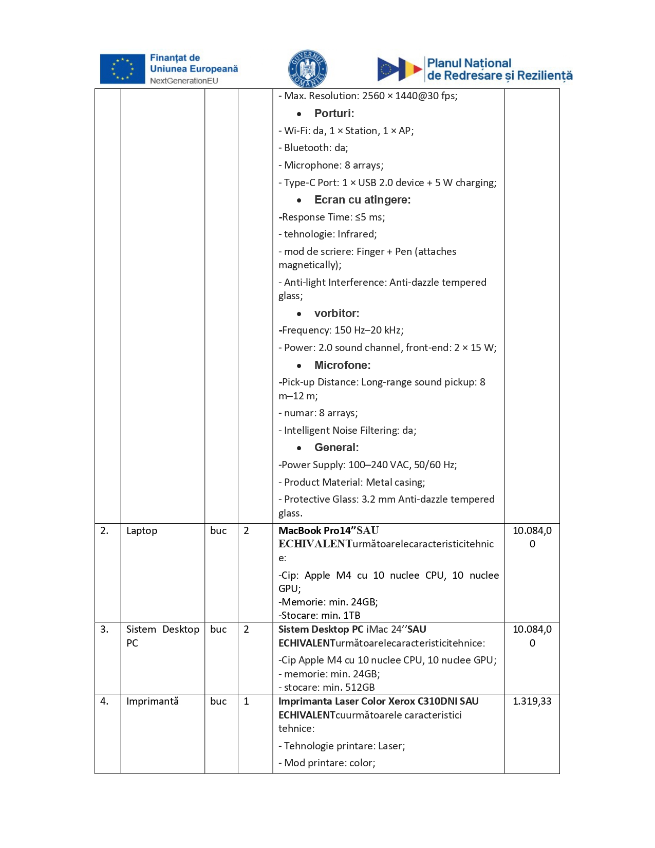 Procedura de achiziție vizează contractarea de produse IT și echipamente moderne, precum: