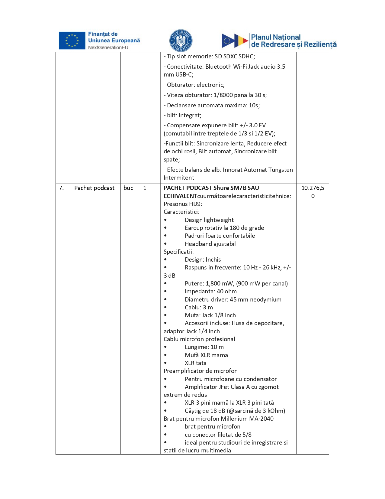 echipamente profesionale pentru producție audio-video (cameră foto-video, pachet podcast complet, lămpi LED),