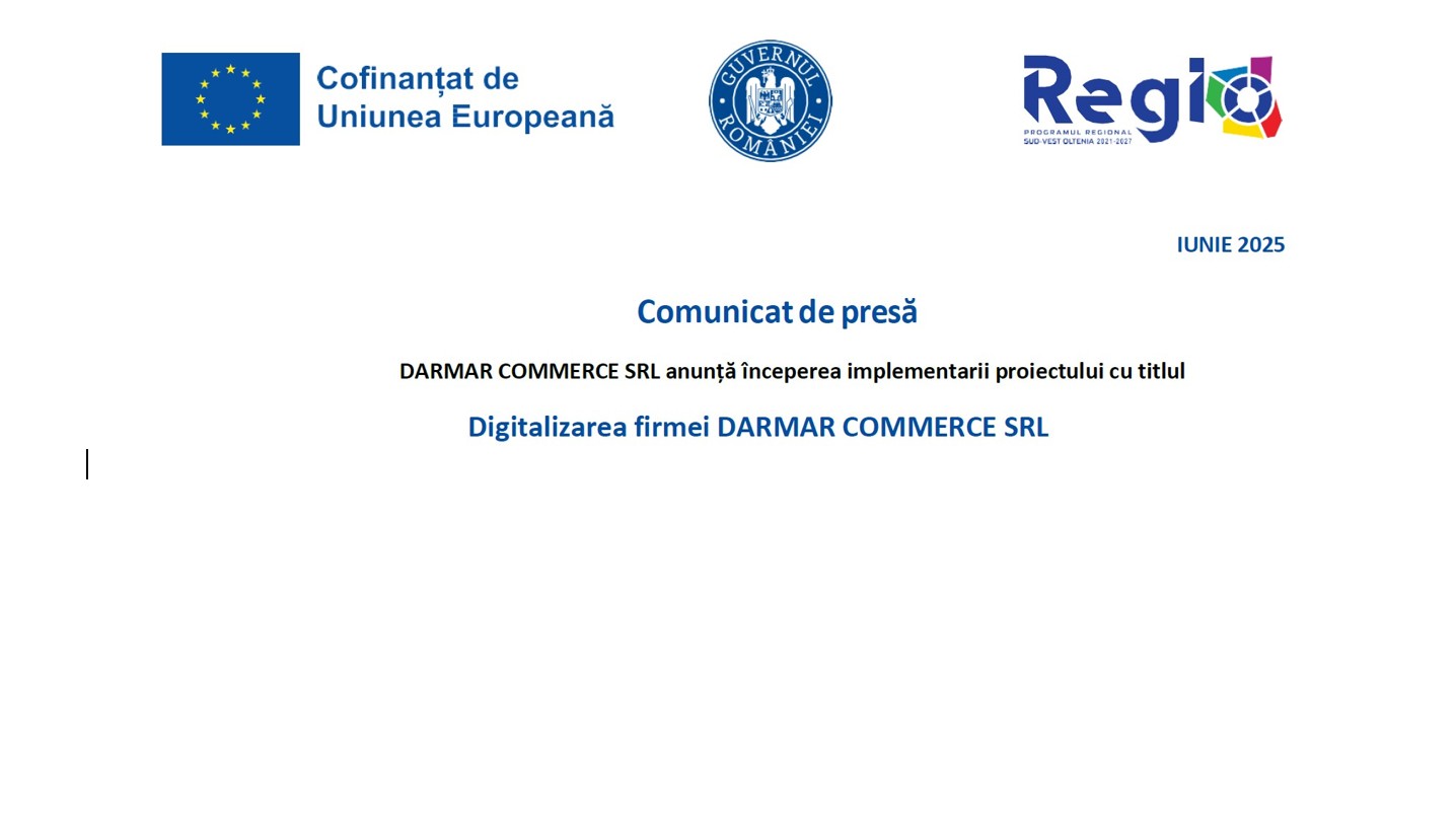 Obiectul general se va realiza prin realizarea obiectivelor specifice: Ob1: Creșterea gradului de digitalizare a firmei DARMAR COMMERCE SRL prin adoptarea de tehnologii și instrumente digitale aferente comerțului electronic. În cadrul proiectului se vor achiziționa echipamente privind desfășurarea activității de tipărire și active necorporale.
